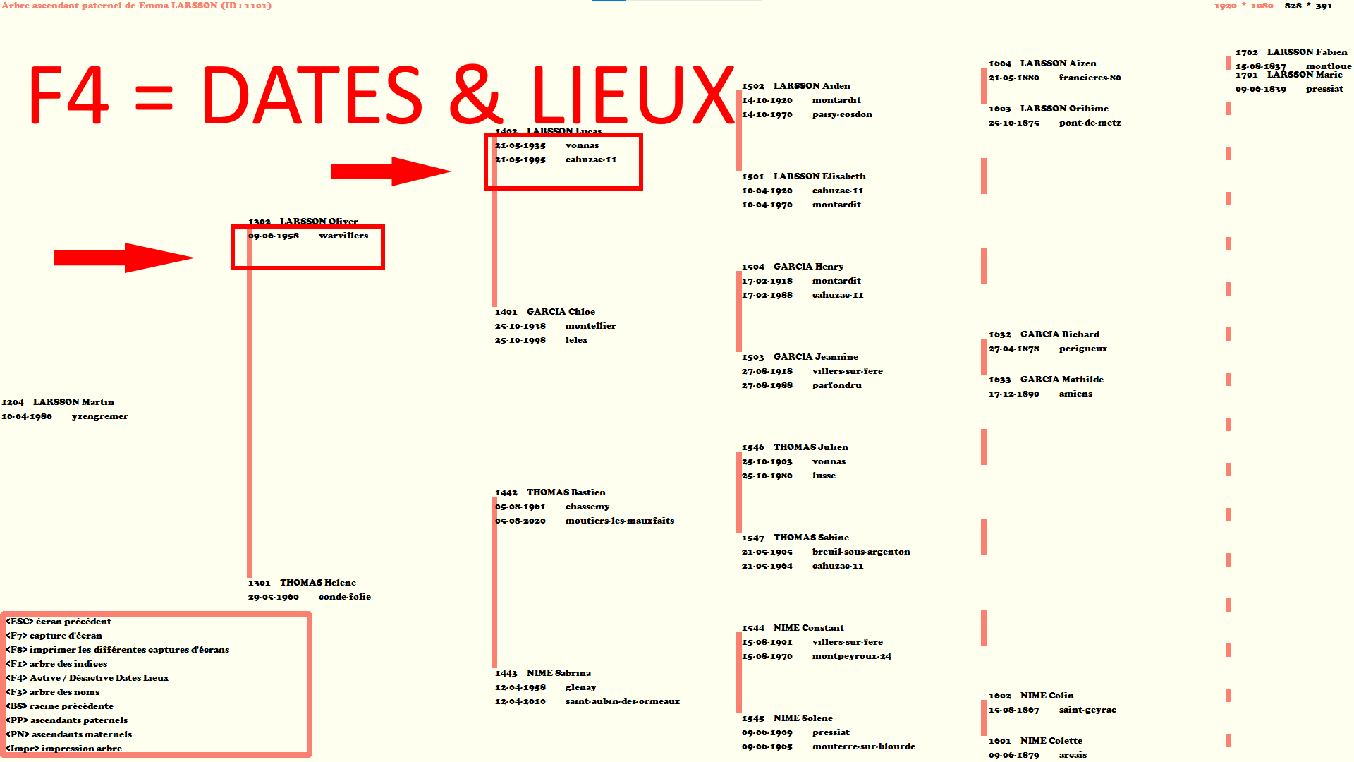 - Afficher la date naissance et décés, le lieu de naissance et décés avec F4